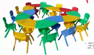 Factory direct sales kindergarten plastic table assembly table painting learning fan-shaped table multi-function combination table and chair thickening