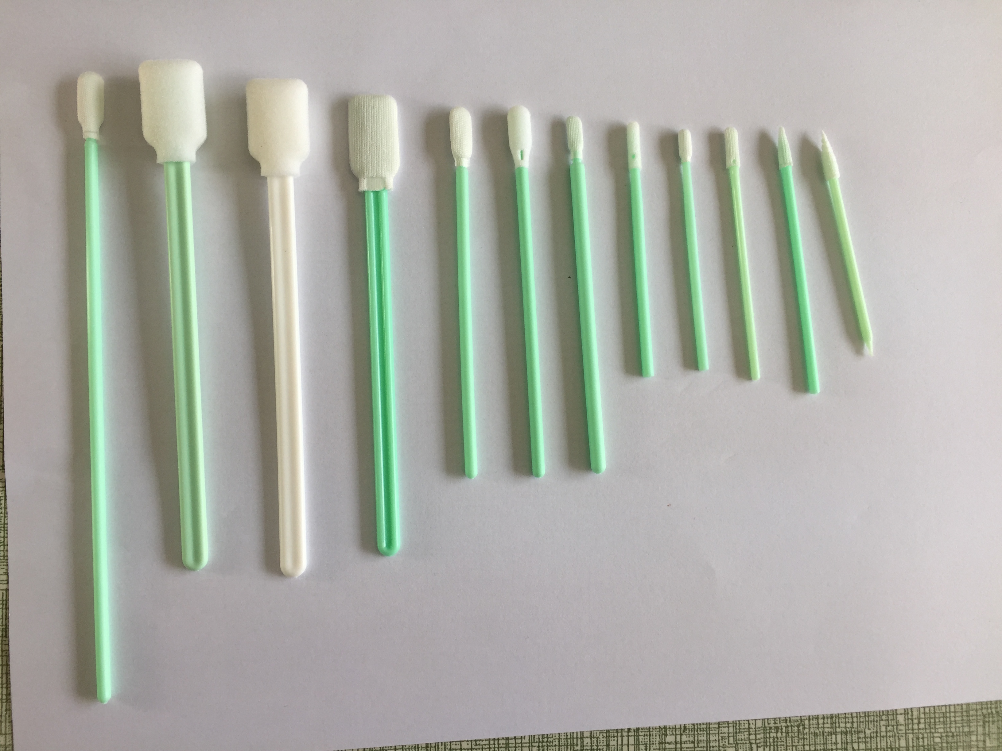 Dust-free cloth head cotton swab wide head green plastic rod Industrial cotton swab Dust-free purification cotton swab flat head 100 pcs