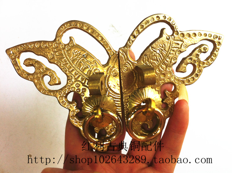 (Dividend Classical Bronze Accessories) antique pure copper furniture accessories cabinet door decorated butterfly handle 15cm