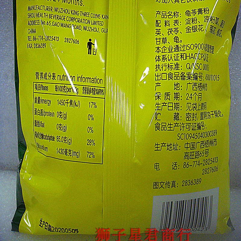 Guangxi Wuzhou Zhengzong Third Qianzong Enriched Turtle paste powder 250g burnt fairy grass black cool powder cool powder grass