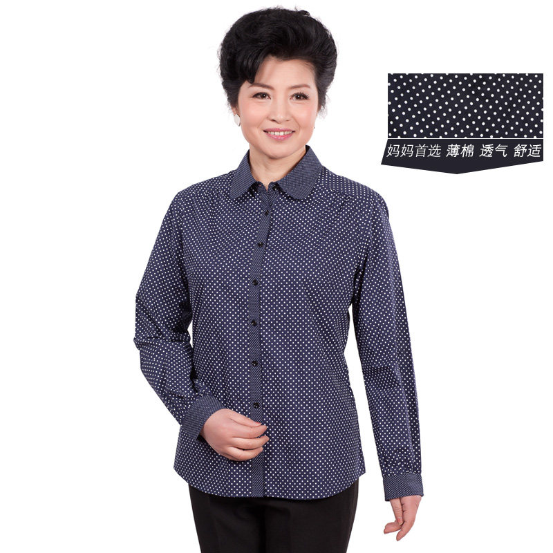 Fumu autumn new middle-aged and elderly shirts, mother's clothing, women's clothing, slim long-sleeved cotton polka dot shirts CF-254