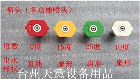 White 40 degrees 2 0 holes by fan nozzle yellow 15 degrees 2 0 holes by fan nozzle G1 4 All copper special quick connection White 40 degrees 1 8 holes by fan nozzle Yellow 15 degrees 1 8