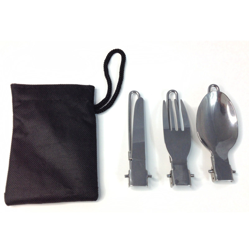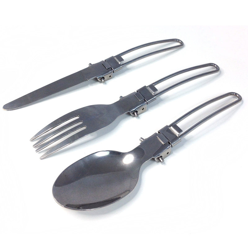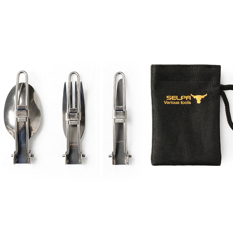 Korean outdoor tableware stainless steel three-piece set picnic folding spoon mountaineering camping barbecue portable knife and fork spoon