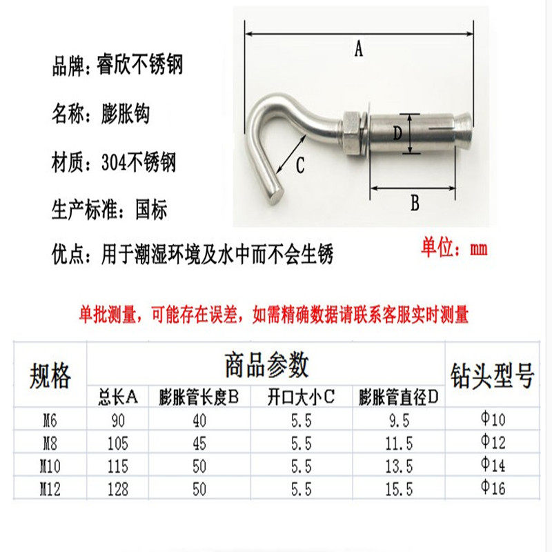 304 stainless steel expansion screw puffy screw stainless steel fluffy hook fluffy hook gauge full