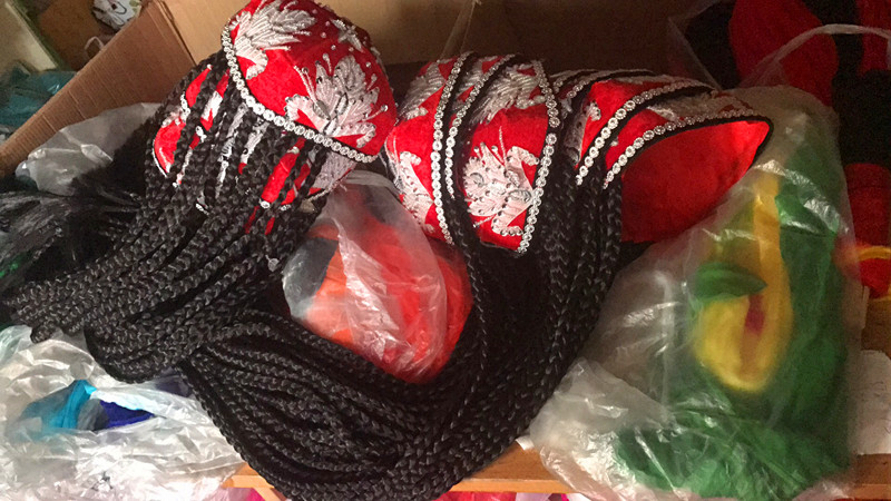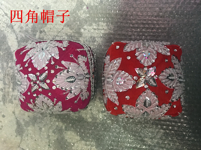 Xinjiang hat Uyghur hat dance headband with braids red hexagonal flower hat verification test three-level long braided hat special offer