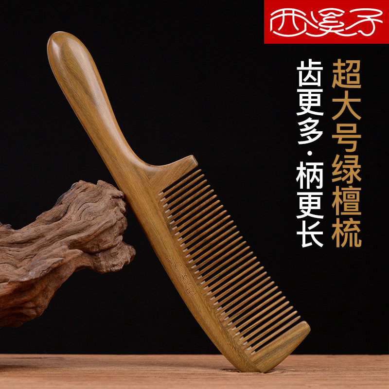 Xixizi natural green sandalwood comb home massage comb dense tooth comb horn portable comb special long hair for ladies