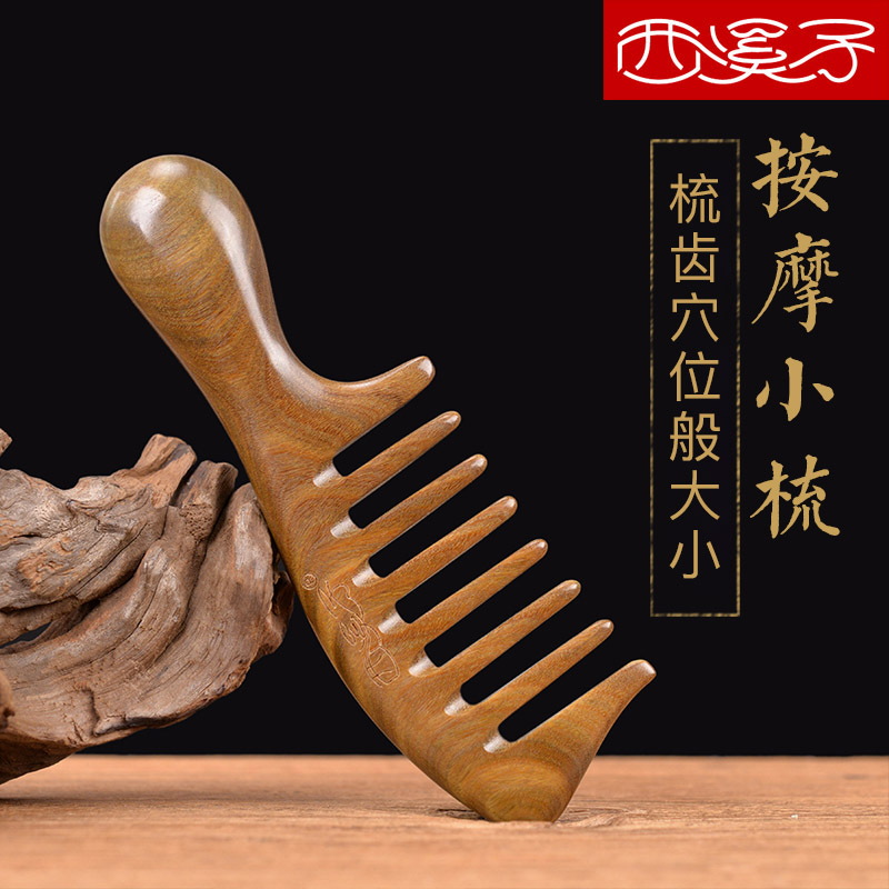 Xixizi whole wood natural green sandalwood comb boutique cute wooden small shuzi sandalwood long hair without knot