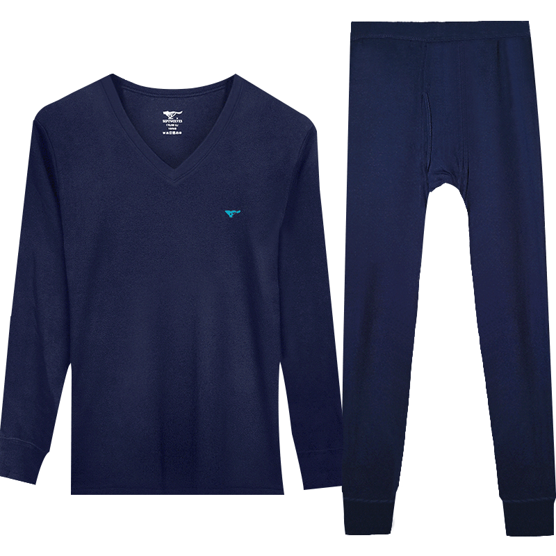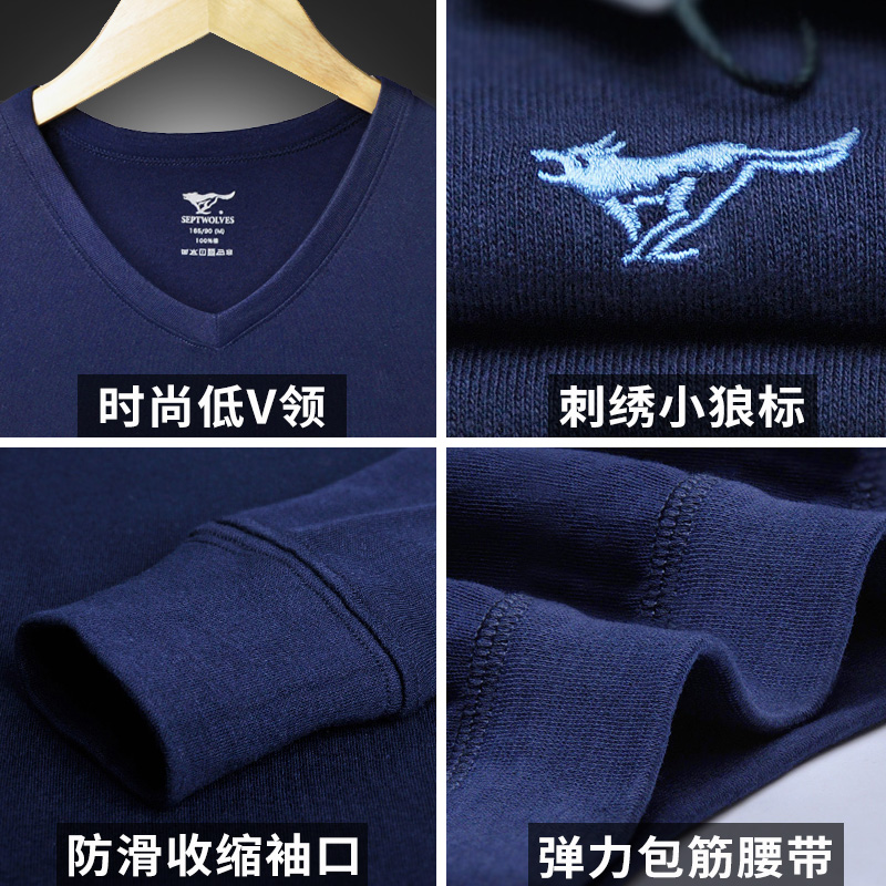 Seven wolves men warm underwear a set of pure cotton daddy autumn pants V-collar chicken heart low-collar youth
