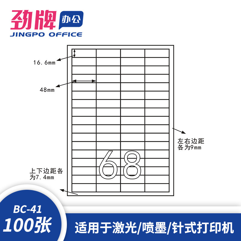 (100 sheets) Zhongji blue box a4 adhesive printed paper blank cut 68 Groups 48*16 6mm sub-light surface cut label laser inkjet printed white matte writing paper