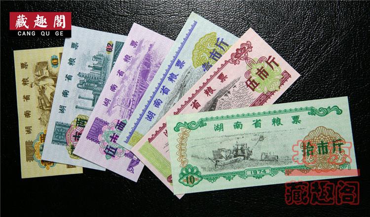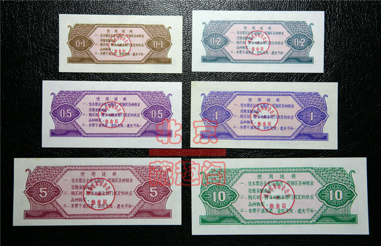 (Boutique)Brand new 1974 Hunan Province food stamps full set of 6 sheets 1 two watermarks anti-counterfeiting food stamps during the Cultural Revolution