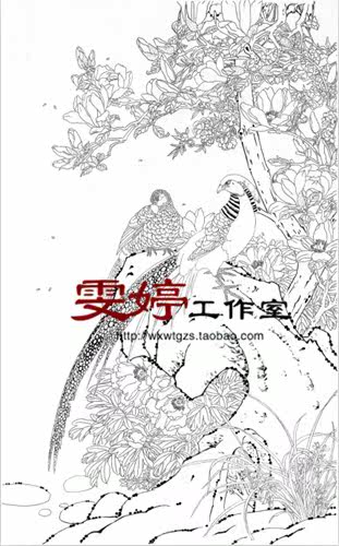 Gongbi white drawing manuscript-golden pheasant yulan traditional Chinese painting painting flower and bird painting living room painting homework painting