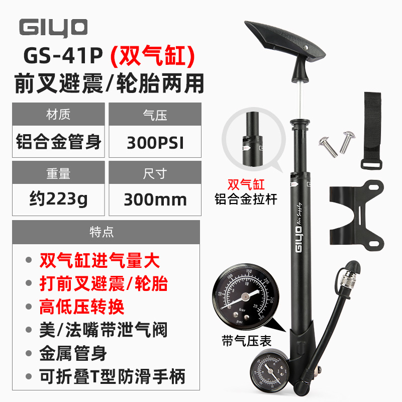 GIYO Bike Mini Convenience Pump Mountain Bike Fork Trachea Suspension Belt Barometer High Pressure Cylinder