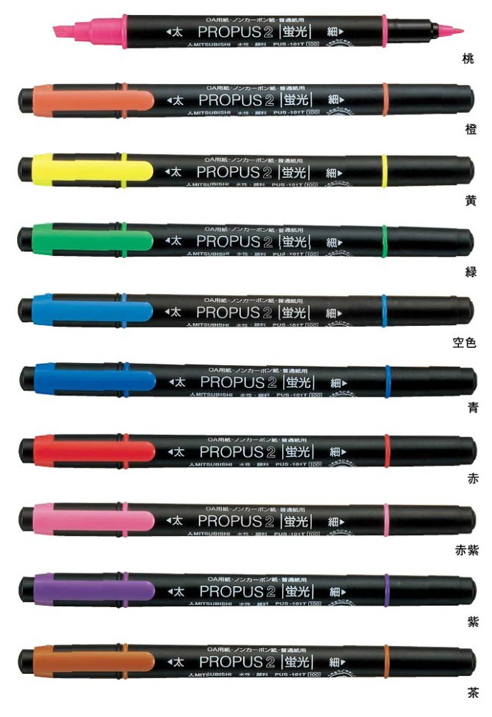 Mitsubishi double-headed round oblique head ten-color set PUS101T Japan UNI-ball direct sales red purple empty color highlighter