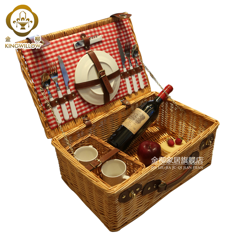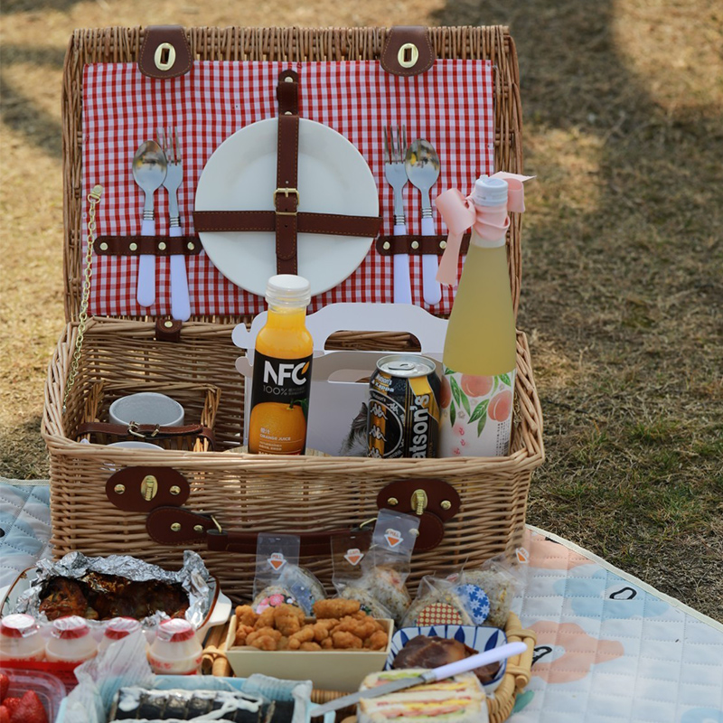Picnic Basket Ins with cutlery Vine Woven Basket Containing Basket Picnic Items Outdoor Camping Full Web Red