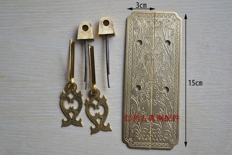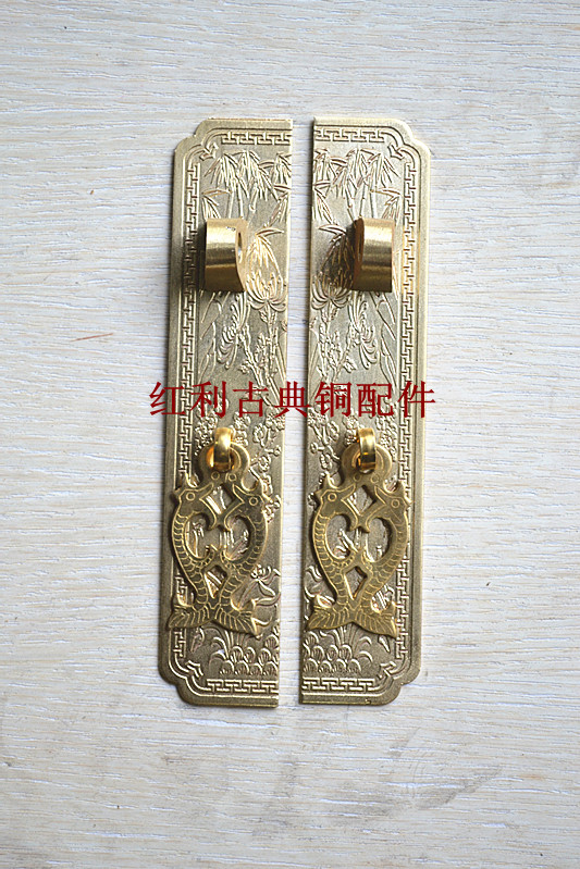 (Dividend Classical Bronze Accessories) antique pure copper furniture accessories bookcase engraving straight handles 15cm