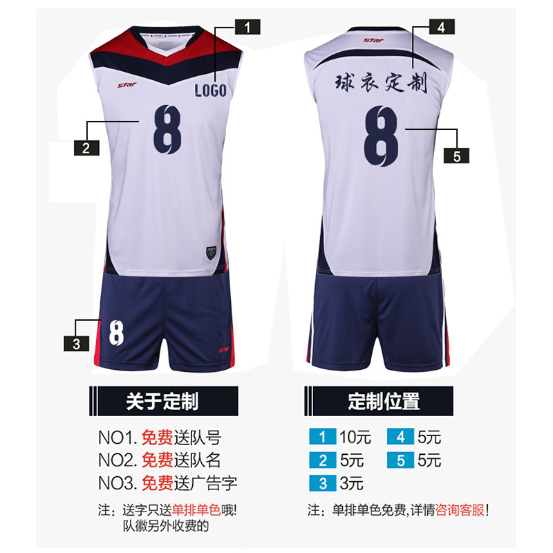 Star Shida volleyball uniforms men's and women's competition uniforms quick-drying and sweat-absorbing custom training uniforms short-sleeved sleeveless suits