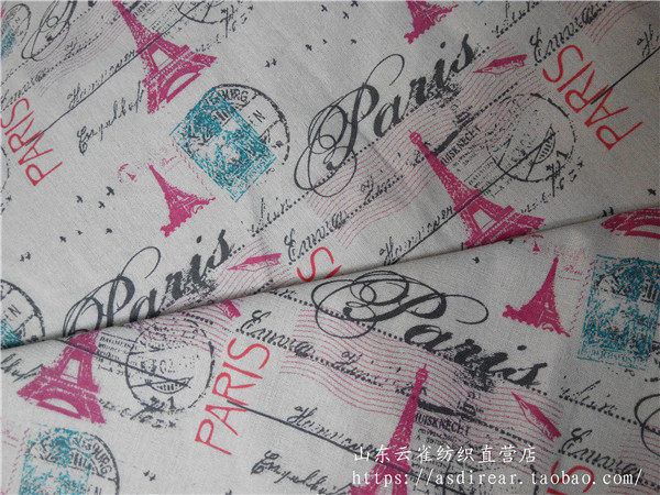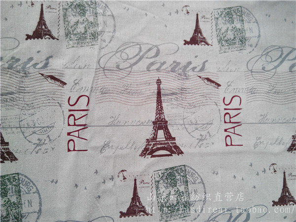 Printed cotton and linen fabric paris iron tower stamp curtain seat cover sofa cover storage wall wallpaper tablecloth English words