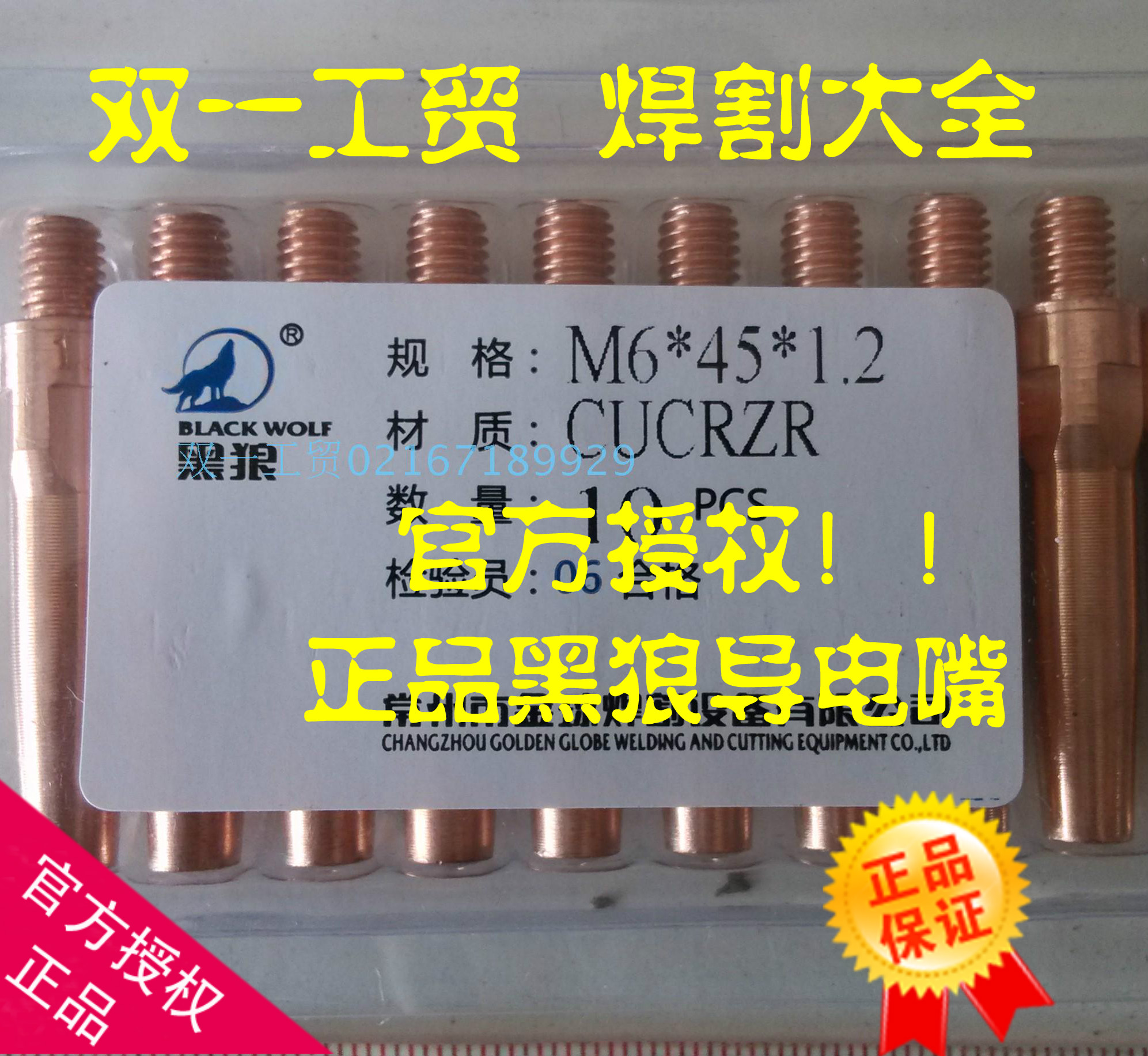Black wolf gas-bonded chrome zirconium copper conductive nozzle welding gun Mouth M6 × 45 40100