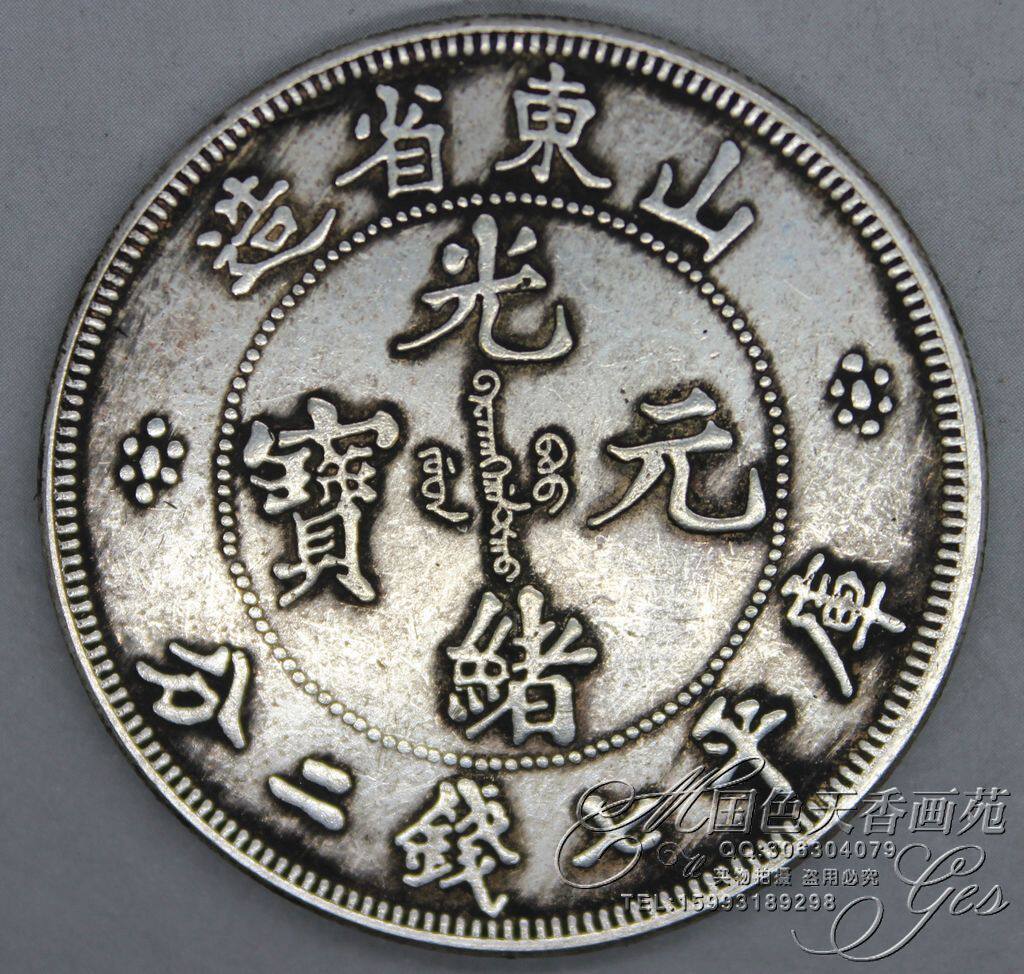 6 Post-mail silver Yuanyuan Process Gift Decorations Imitation Goods Ocean Dragon Ocean Silver Coin Antique Coins white bronze Guangxu Yuanbao Shandong