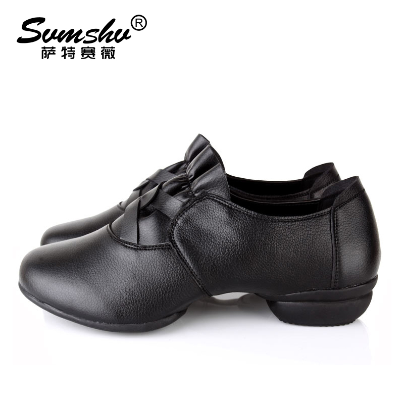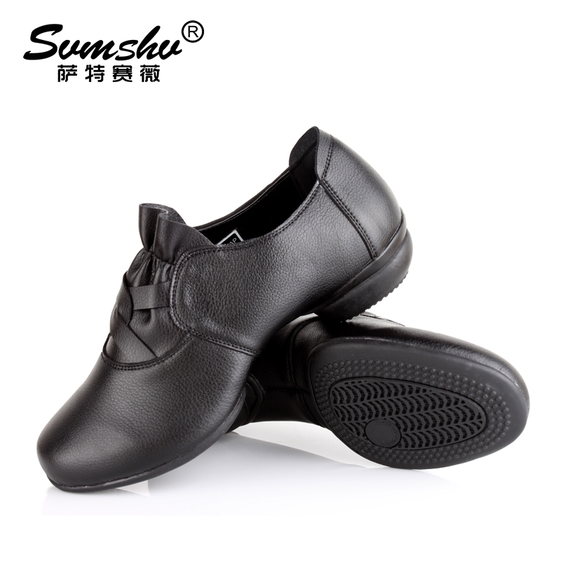 Square dance shoes female cow leather with autumn new dance shoes Adult Four Seasons Soft Bottom in old age Ballroom Dancing Shoes