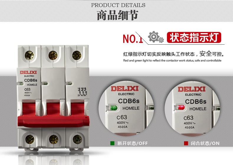 Delixi mini circuit breaker 3P Delixi air switch 3P 63A household air circuit breaker