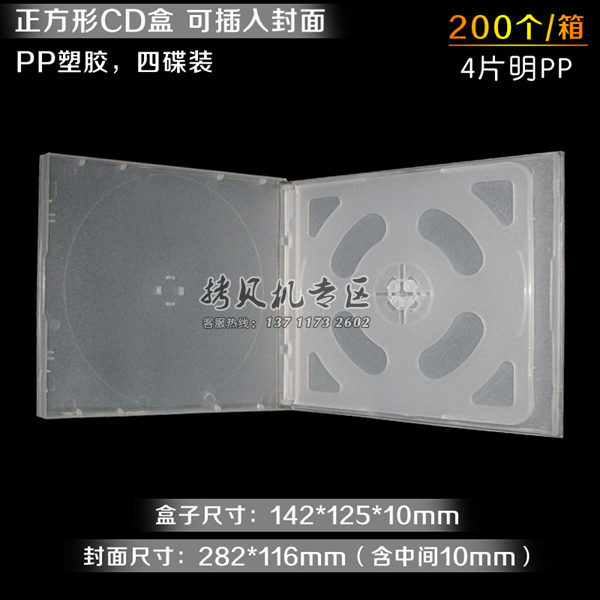 4 tablets Ming PP square box Polished transparent plastic CD box Four disc cartridge covers 200 boxes