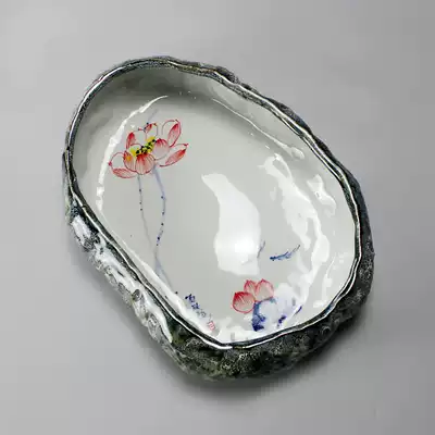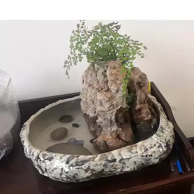 Jingdezhen creative hand-painted ceramic large fish tank goldfish turtle tank handmade imitation stone water shallow sleeping bowl Lotus basin