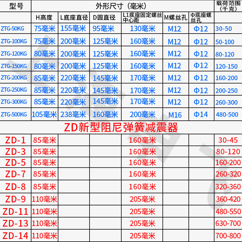 ZD-1 (30-45 kg) ZD-2 (45-80 kg) ZD-3 (payload 80-120 kg) ZD-4 (payload 120-160)