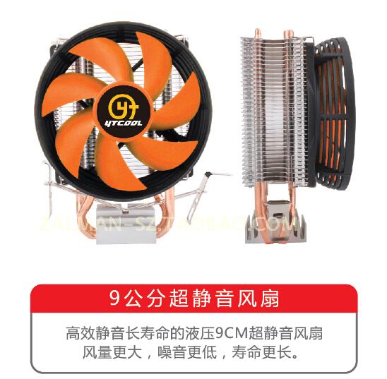 2 Pure copper heat pipe 9cm silent fan CPU cooler Red blue green light 1150 1 5 6 775 AMD 4