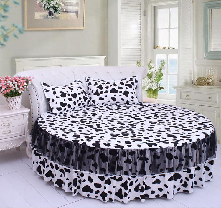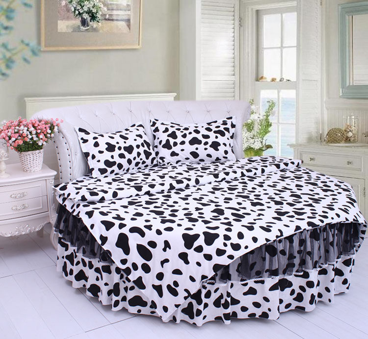 Night dance Leaning Round Bed bed Bed Goods Round Bed Four Pieces Full Pure Cotton Round Quilt Cover 4 Pieces Black And White Spots