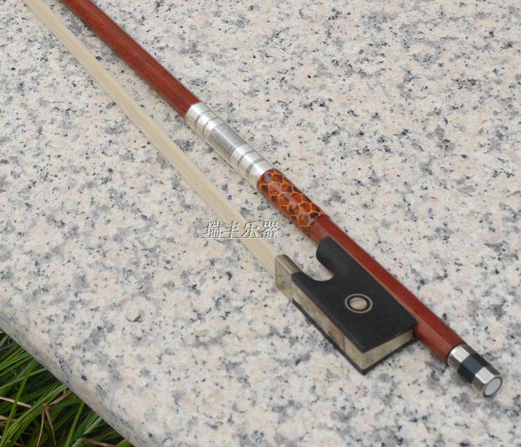 High-grade violin bow violin bow ebony inlaid pisces eyes wrapped red snakeskin violin octagonal bow shaft