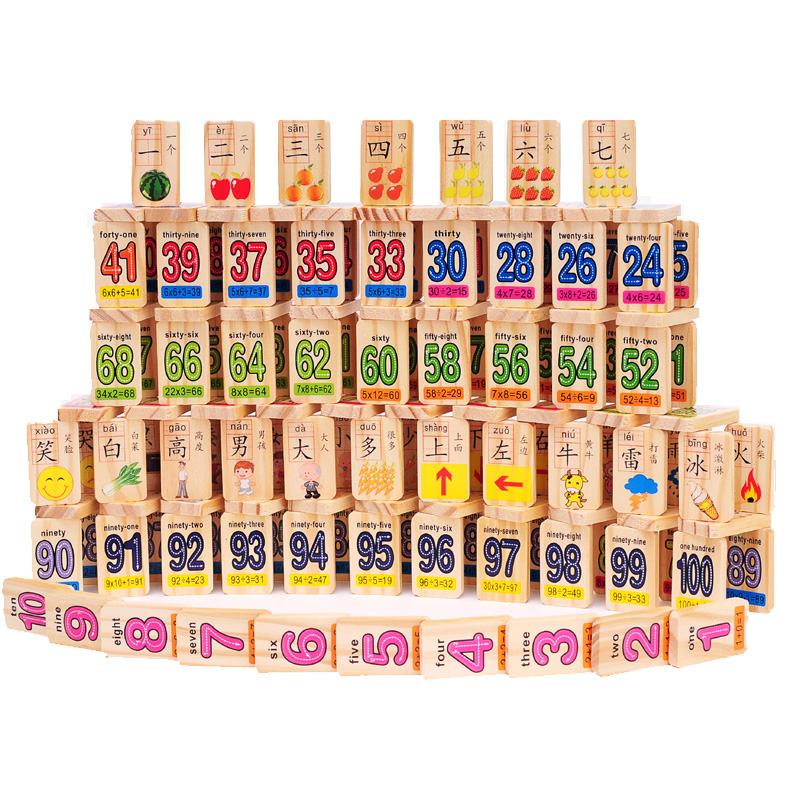 100 pieces of fruits, vegetables, animals, traffic, dominoes, fruits, understanding, dominoes (fruits and vegetables, cognition) 100 pieces of double-sided digital Chinese characters domino 100 pieces of double-sided Chinese characters domino 100 pieces