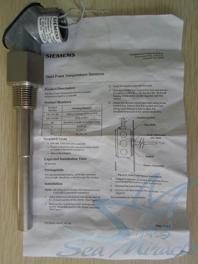 Siemens 544-577-40 Thermistor Thermocouple Temperature Sensor 1000 Ohm RTD