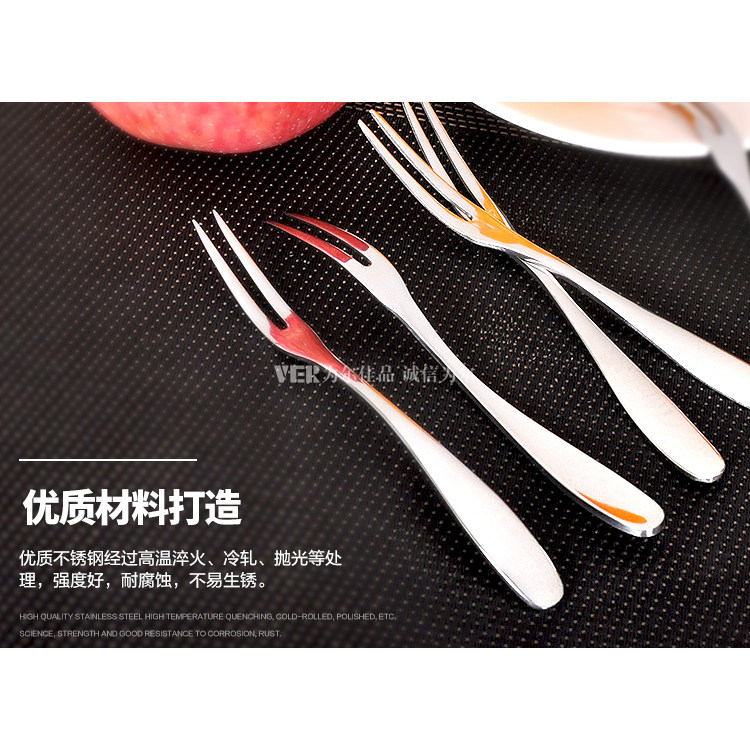 Thickened 304 Stainless Steel Fruit Fork Creative Fashion Small Fruit Sign Sweet Pitchfork Suit Two Teeth Fork Cake Fork