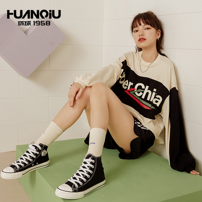 Global official summer and autumn new shoes women's versatile high-barrel canvas shoes Women's white shoes student street clap shoes tide