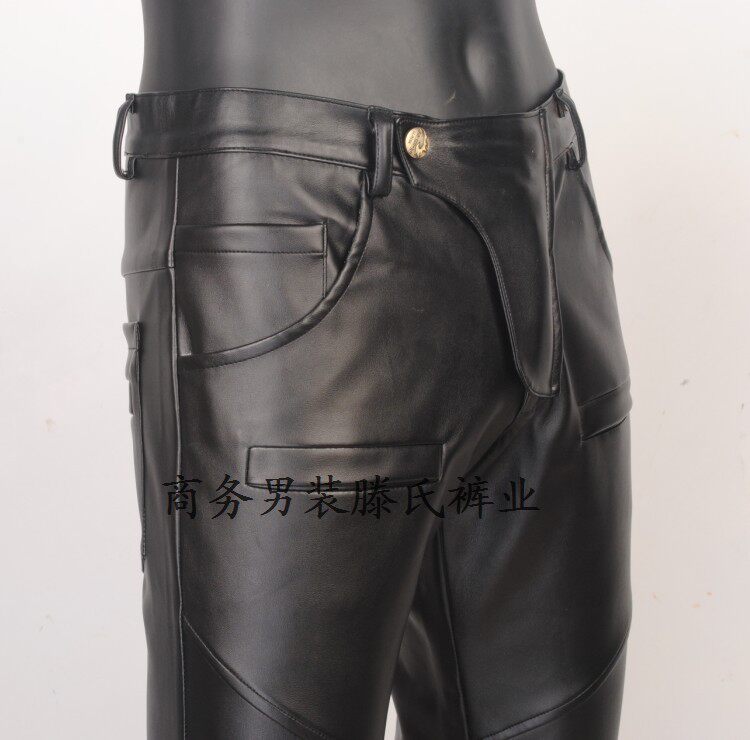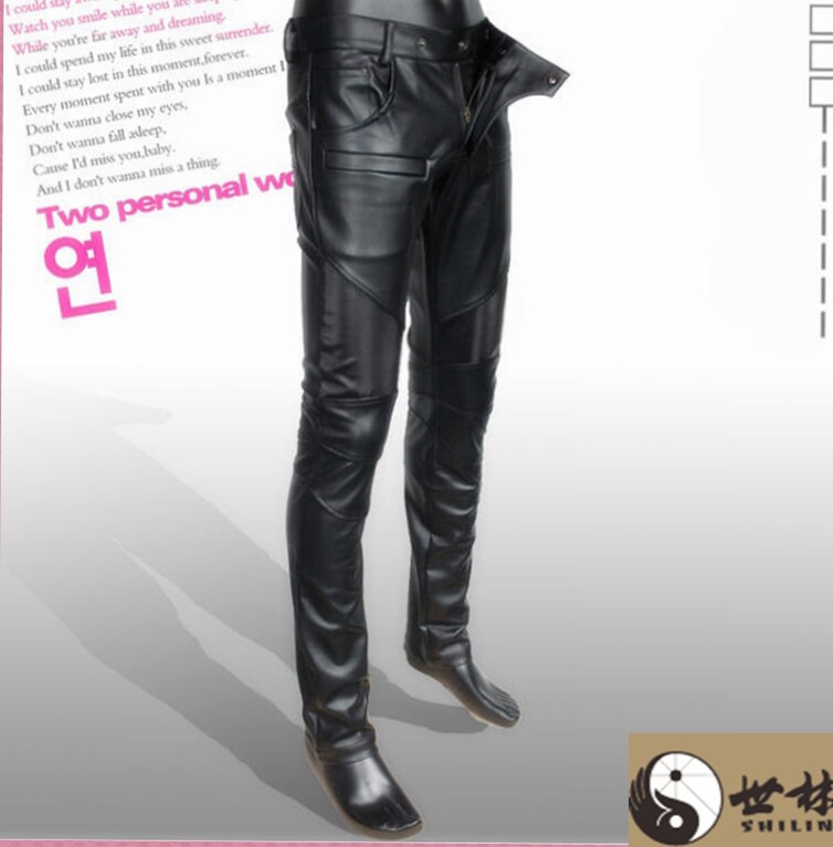 Spring and autumn thin motorcycle slim leather pants men's Korean version of the tide small feet skinny leather pants men's stage performance leather pants men