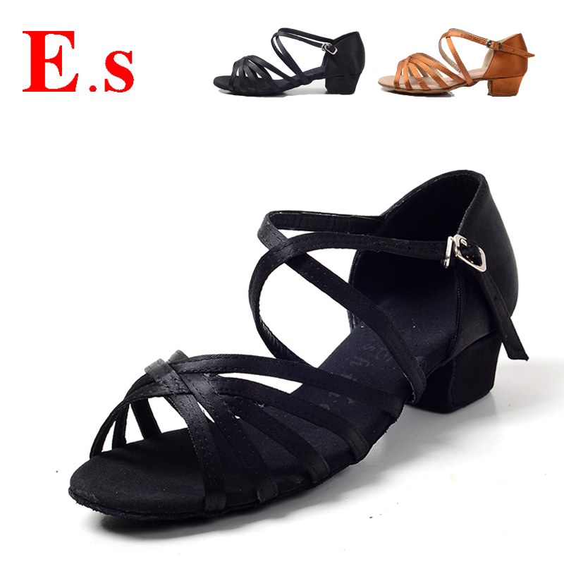 Children's Latin dance shoes girls children's latin shoes soft bottom dance shoes satin children's middle heel bag dance shoes mail