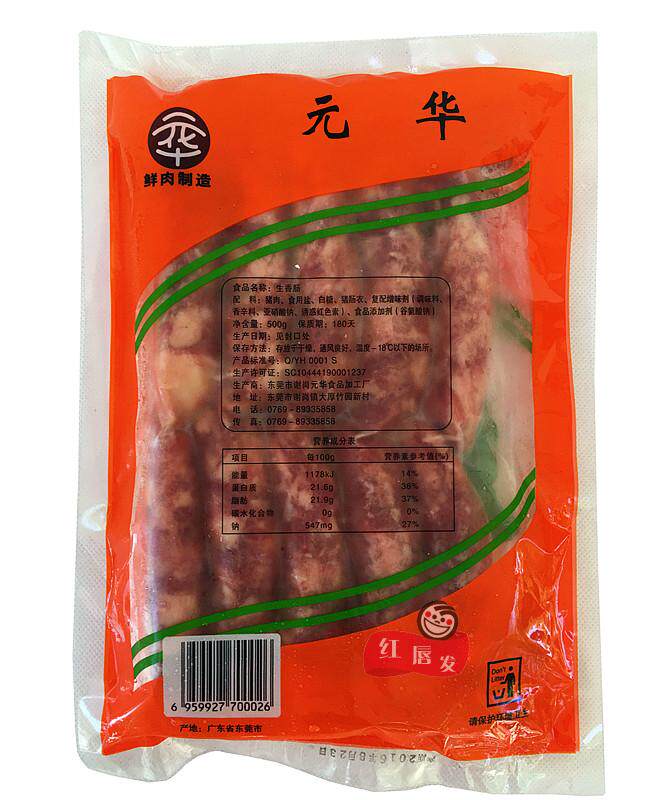 Full 6 bags Guangdong Taiwan flavor Yuanhua raw meat sausage original flavor sausage Taiwan sausage 500g