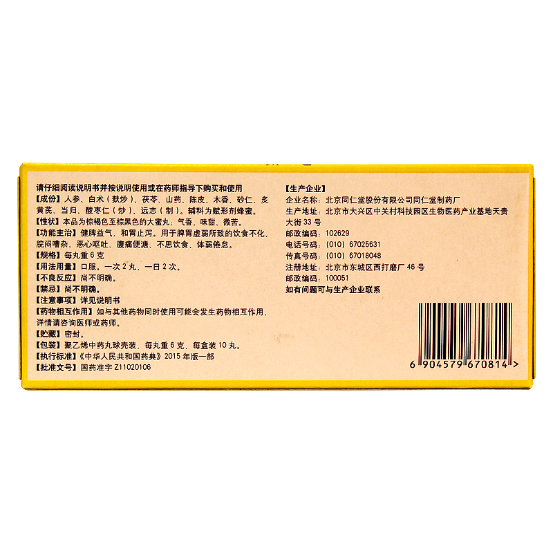 Hominin ginseng invigorating the spleen pills 10 pills spleen and stomach weakness to invigorate the qi and the stomach and nausea vomiting and the abdominal pain