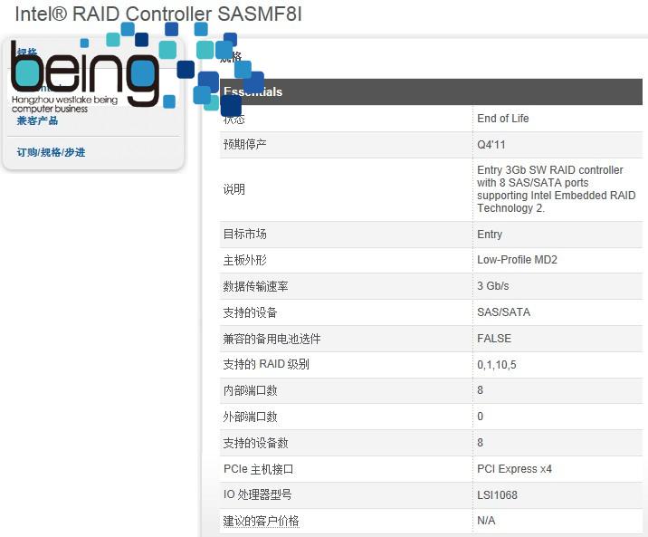 INTEL SASMF8I Eight-mouth SAS SATA array card array 01105 brand new original fit