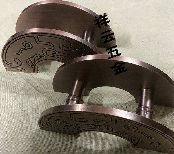 Chinese antique semicircular door handle Glass door Wooden door handle Xiangyun red bronze hotel door handle