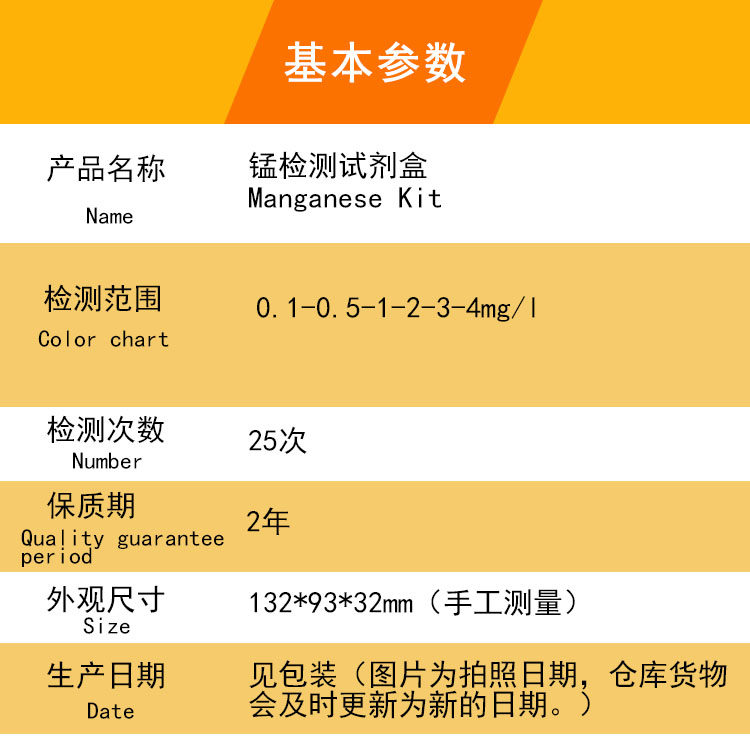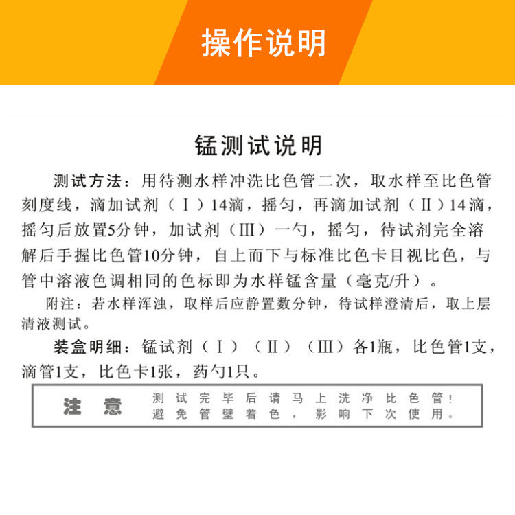 Manganese ion rapid detection test box kit 0 1-4 water heavy metal manganese detection reagent water treatment