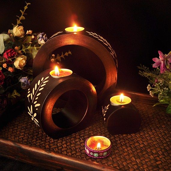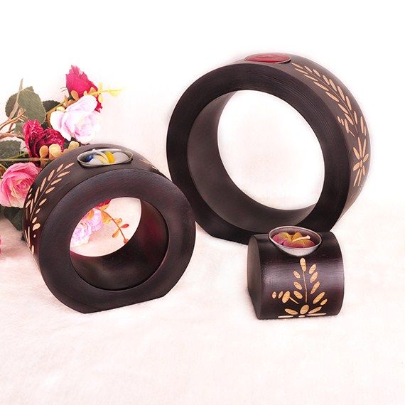 Southeast Asian special handicraft home decoration accessories hand-carved three-piece set candlestick limited time
