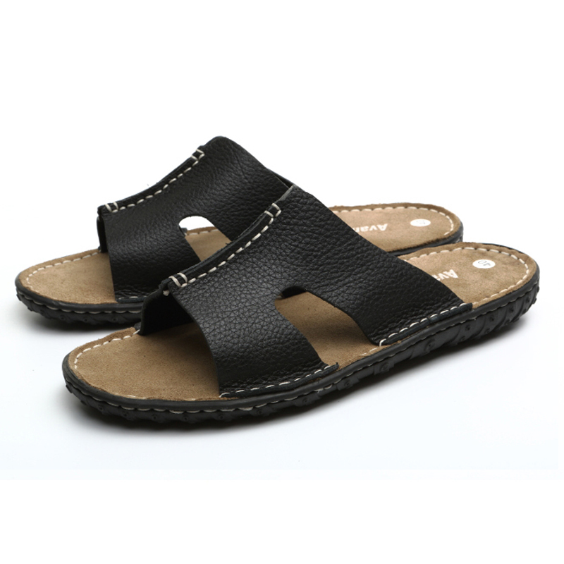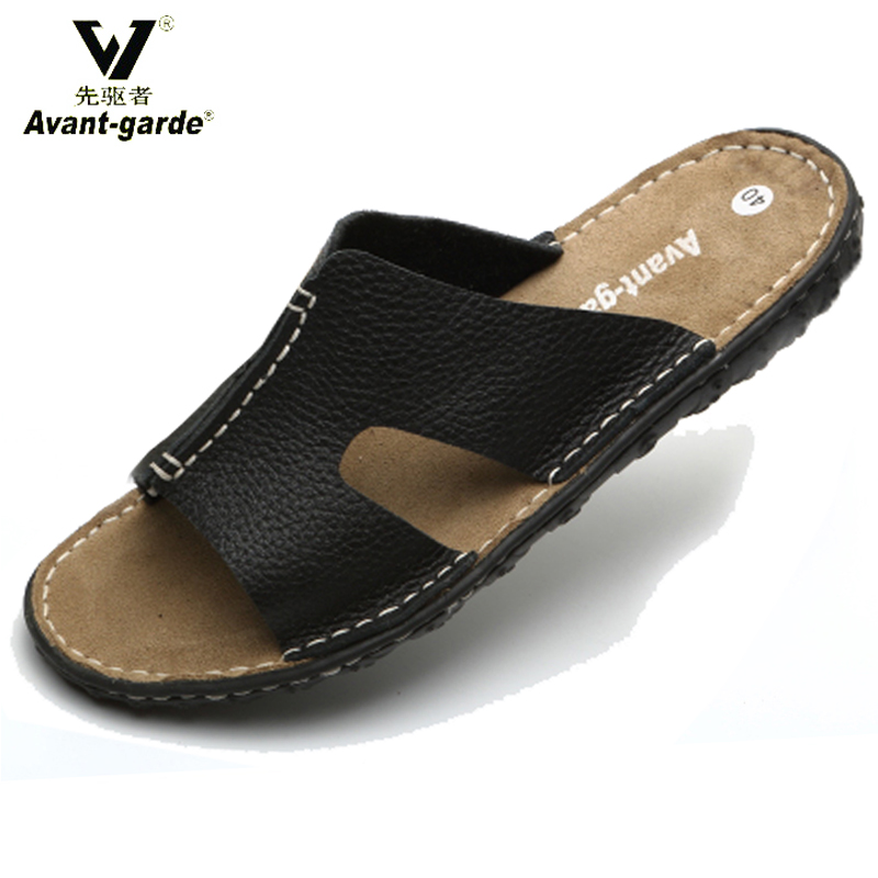 Special summer cowhide men's sandals trendy youth beach slippers leather casual breathable comfortable flip flops