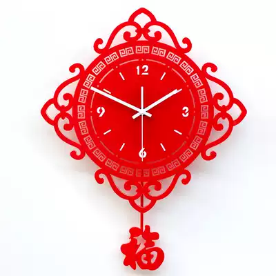Yakeli Chinese creative living room quartz clock Fashion art wall clock Mute clock Blessing word swing decorative clock