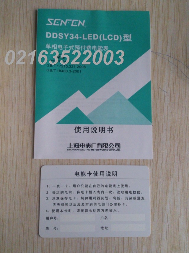 Shanghai Electricity Meter Plant DDSY34 5-20A Single Phase Prepaid Power Meter IC Card Power Supply Authority for Shanghai Electricity Meter