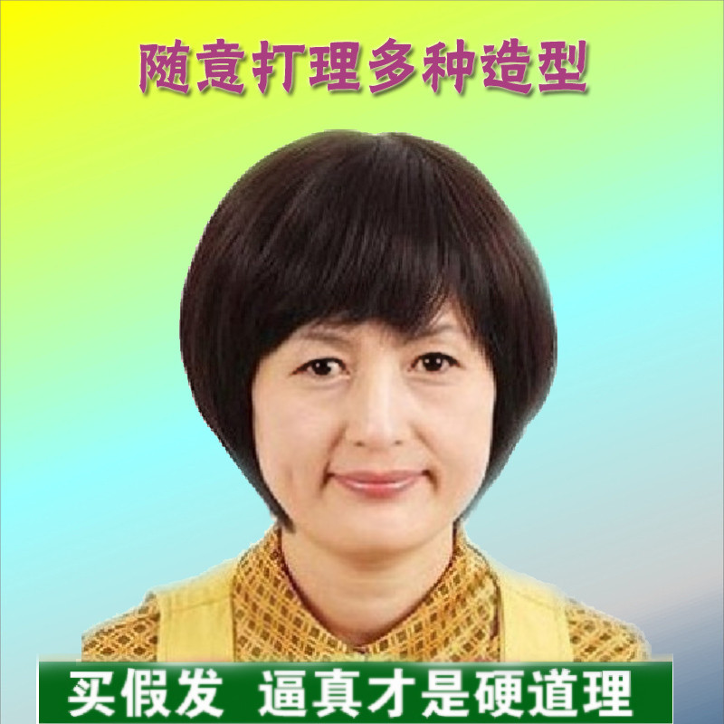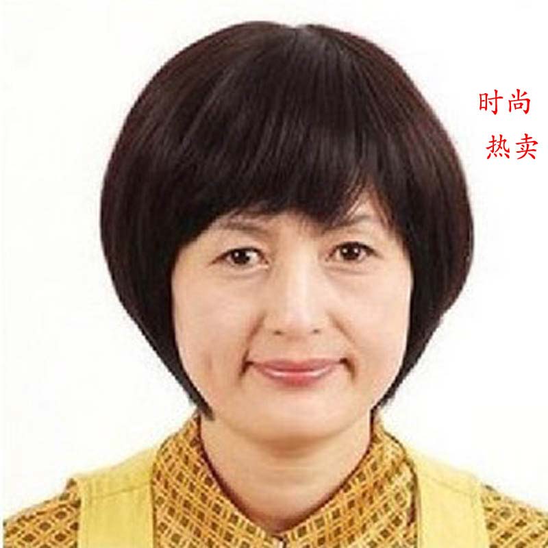 Real hair wig Lady's middle-aged wig can be Qi can be oblique bangs short straight hair mom bobo head real hairstyle