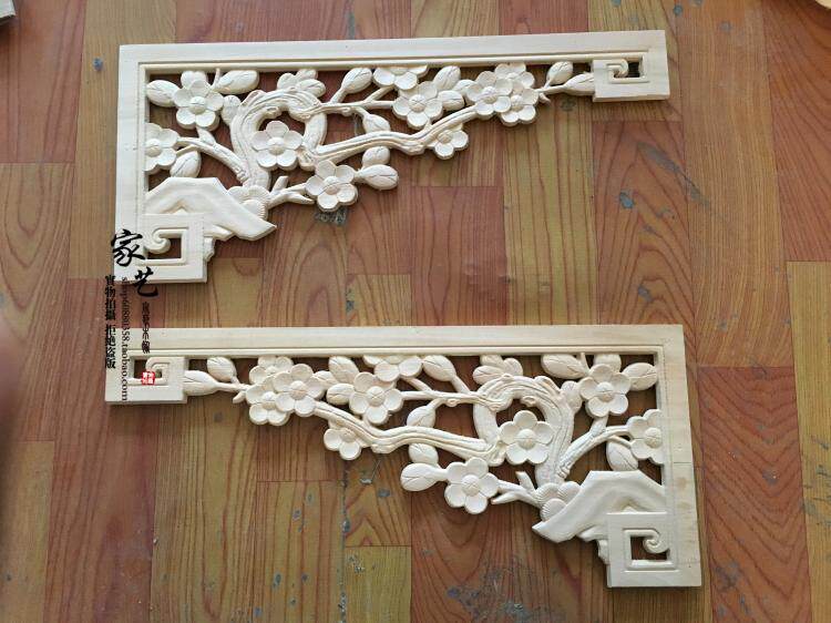 East Yang Wood Carving solid wood Chinese style flower lattice hanging down Xuanguan partition Background wall Pass door lintel Plum Blossom Gun Corner Flower
