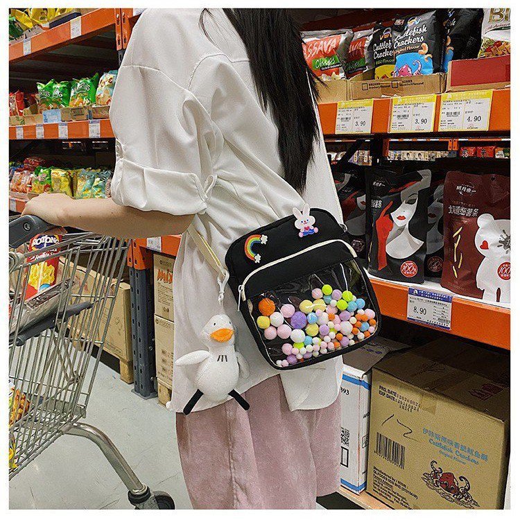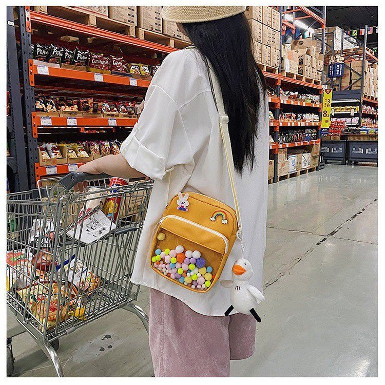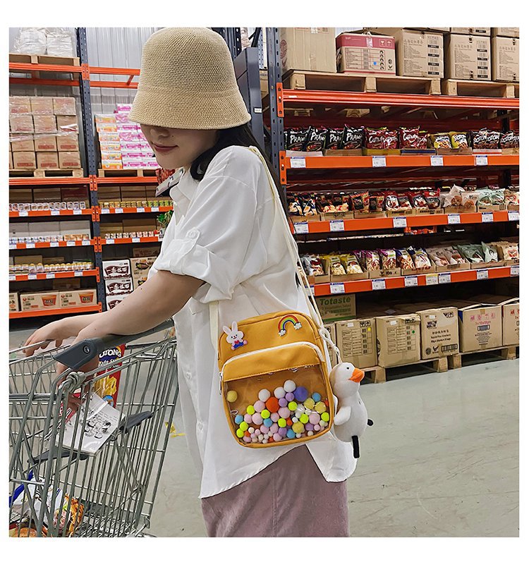 2022 Summer new day ensemble cute with strange personality Colour wool ball transparent packet Soft girl Student Oblique Scapegoat
