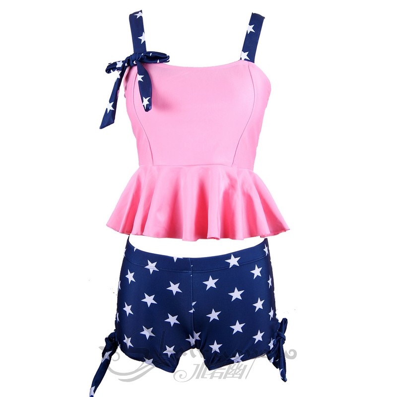 Two-style beach swimsuit flat corner woman conserved with lean shade sports swimsuit female shoulder strap lotus leaf side